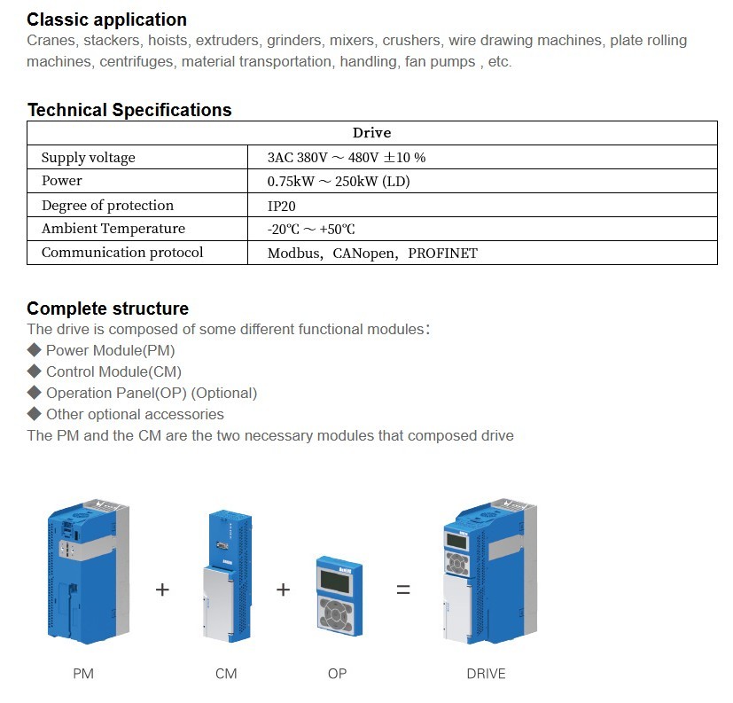 PM25+CM22+OP25:B1(0.75 kW~3 kW),B2(4 kW~7.5kW),B3(11 kW~15kW),B4(18.5 kW~37kW),B6(45 kW~132kW),B7(160kW ~ 250kW)